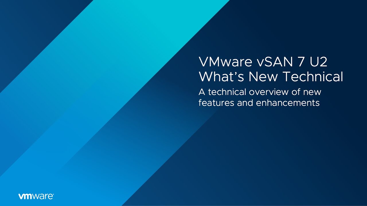 This presentation highlights the features and capabilities available in vSAN 7 Update 2.