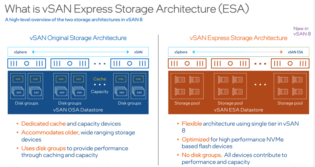 With vSAN 8.0 and the new architecture, ESA, all disks contribute to a single storage pool with a flat tier. No more disk groups or cache tiers.