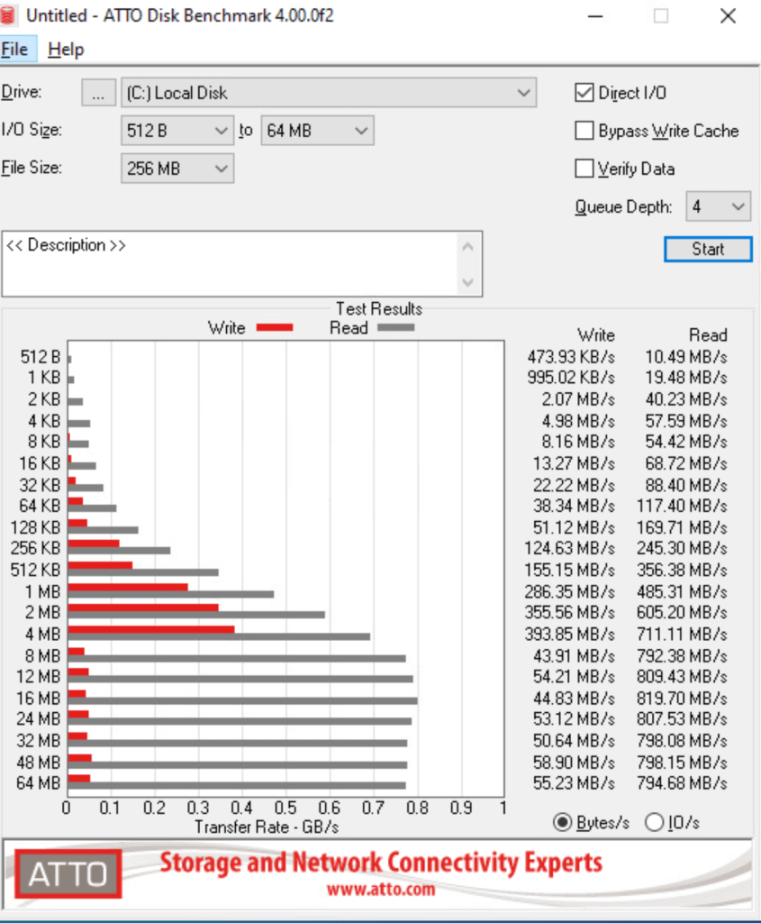 Top speeds reached: Reads: 819MBs / Writes: 393MBs