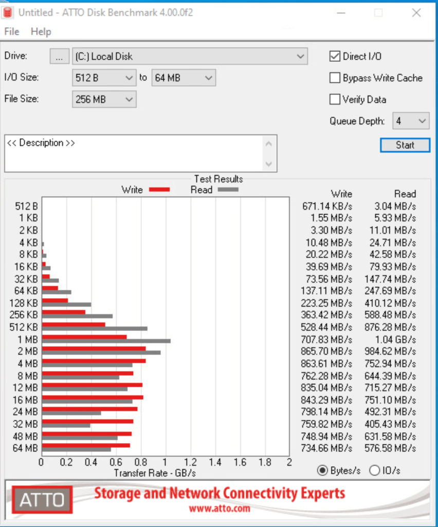 Top speeds reached: Reads: 1.04GBs / Writes: 865MBs