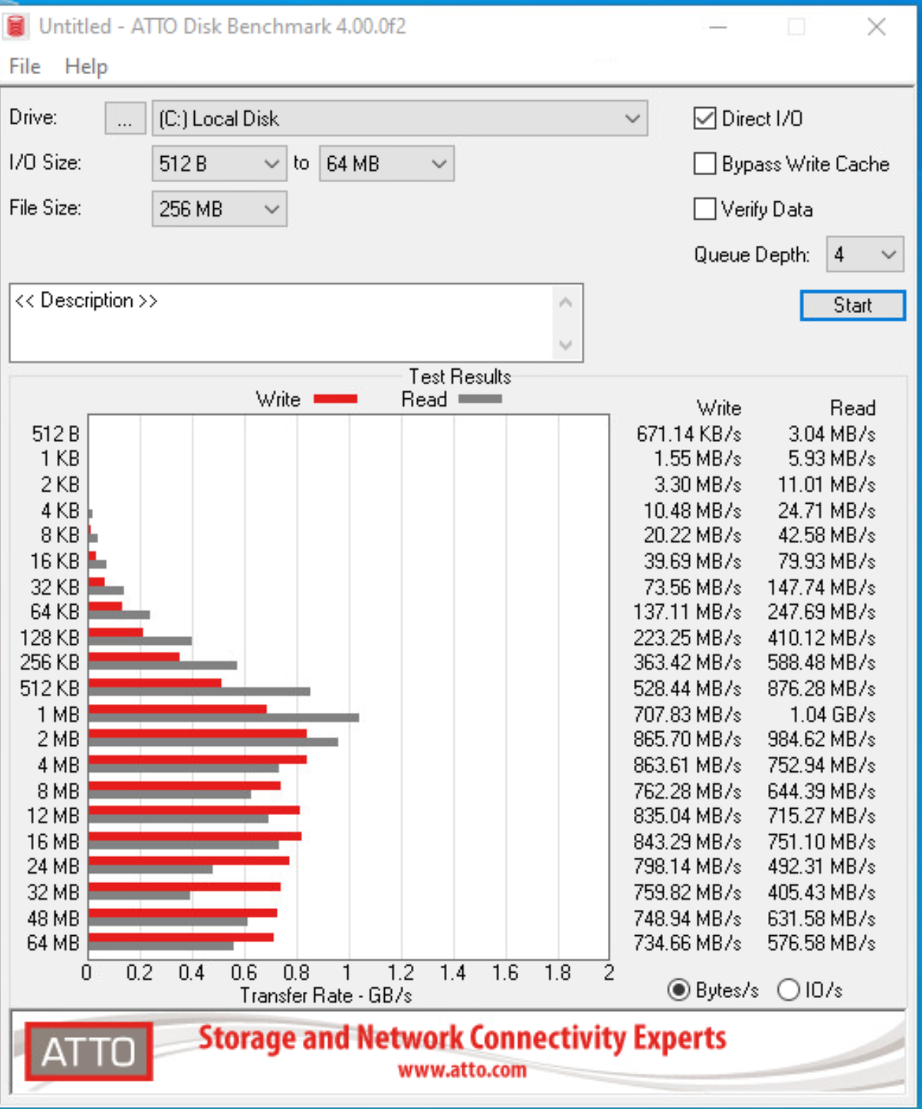 Top speeds reached: Reads: 1.04GBs / Writes: 865MBs